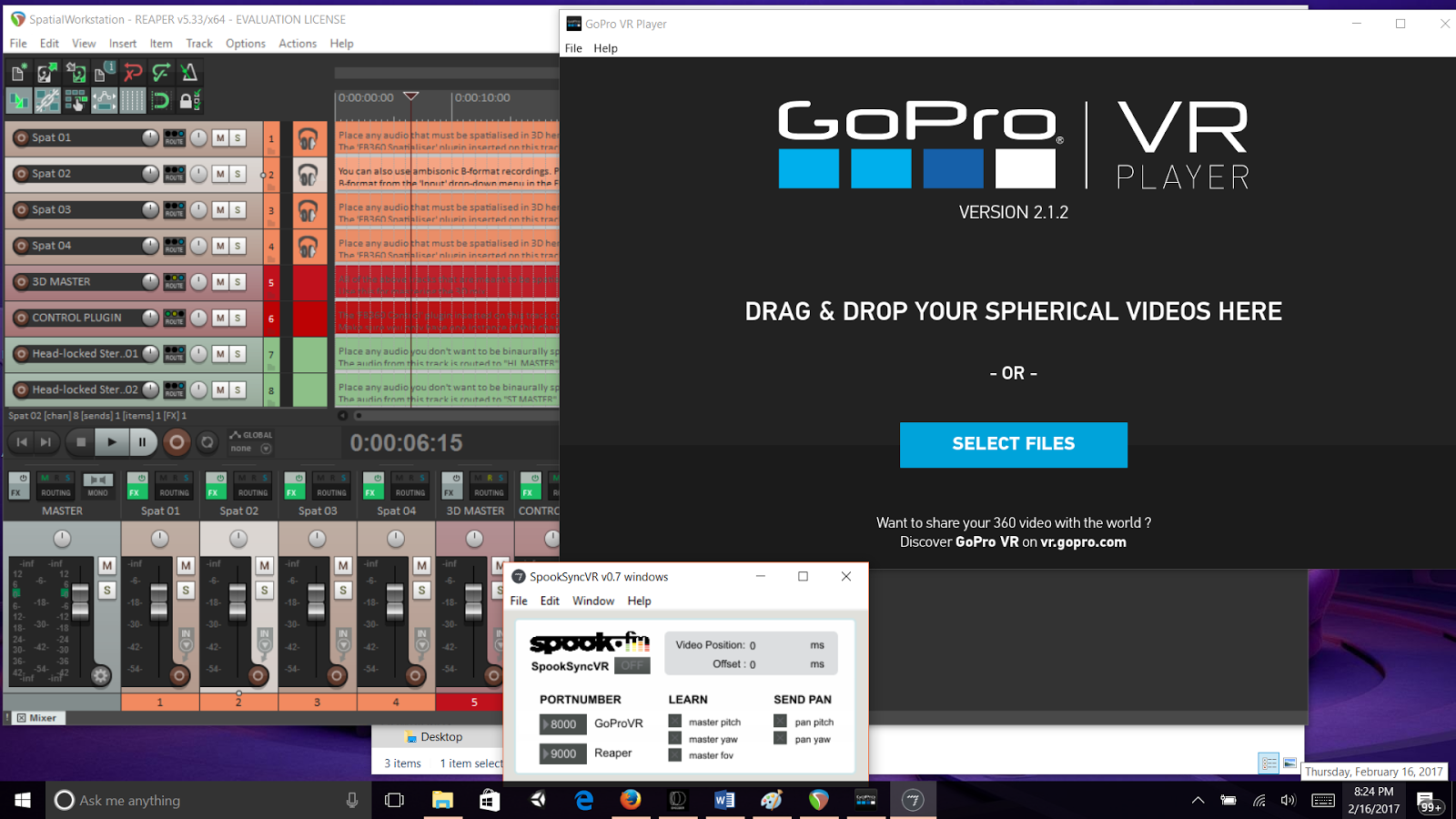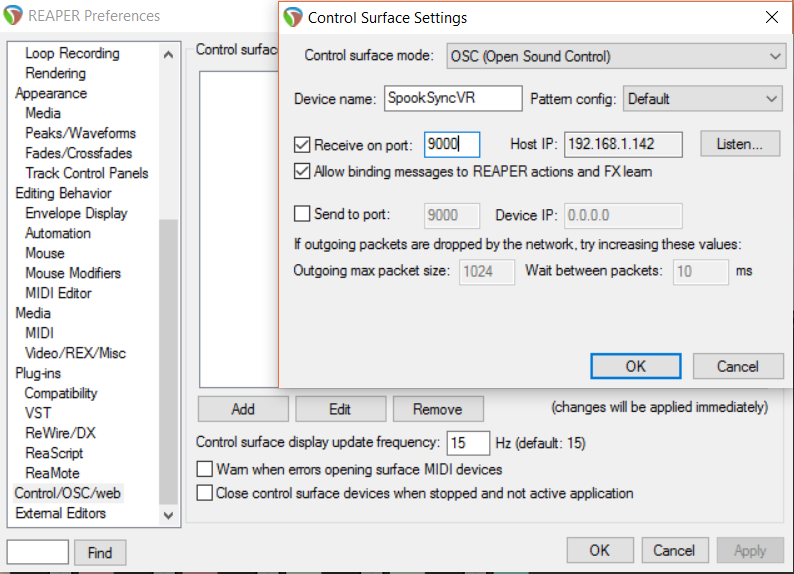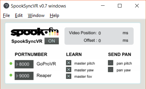This part of the setup involved three steps: Configuring Reaper to receive information from another app, configuring GoProVR to send information out to another app, and setting up SpookSync to link them together.