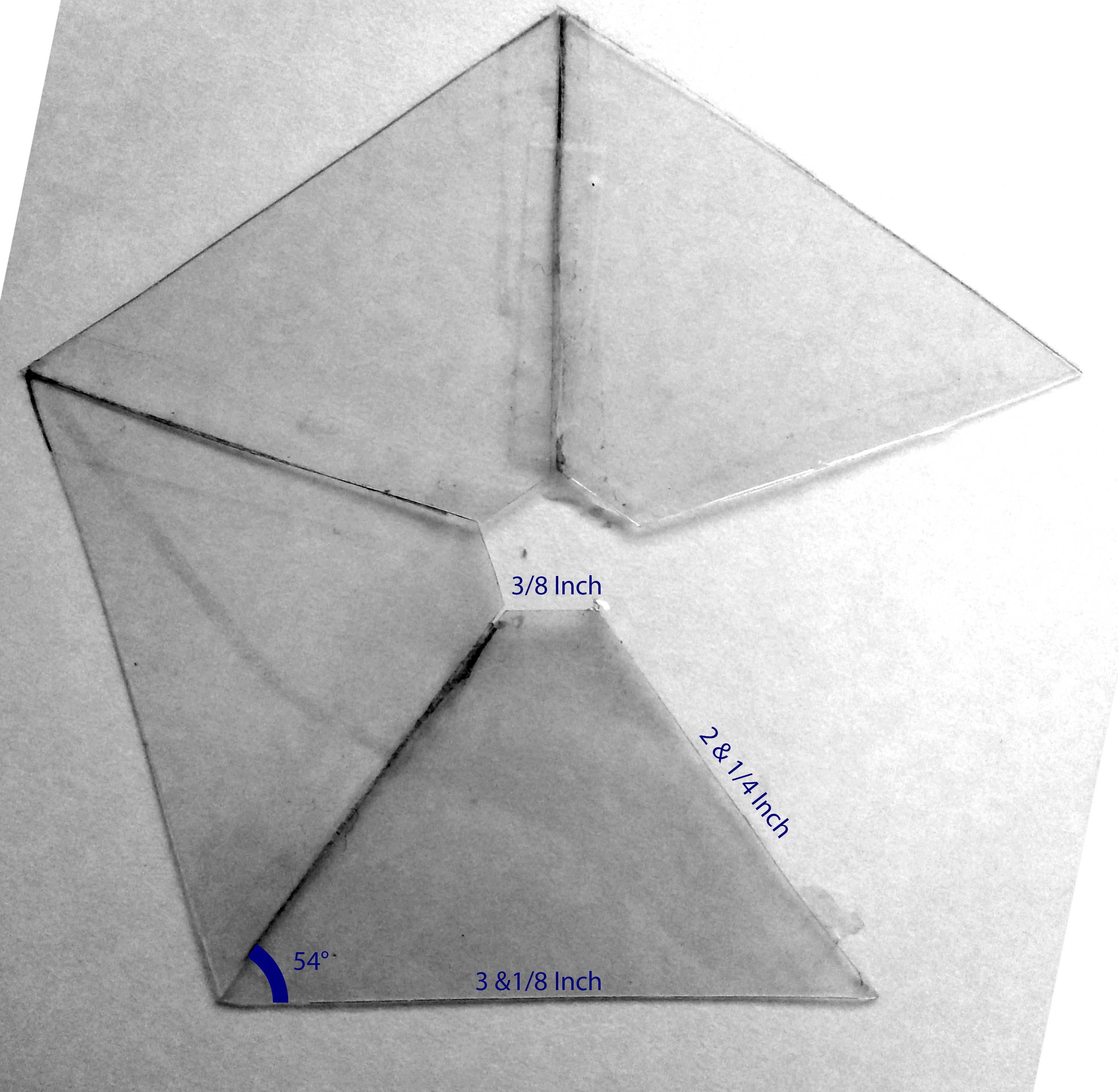 I created my first two pyramids by cutting up a thick plastic food container. I used a paper template, scotch tape and scissors to do the assembly. The first pyramid was poorly sized, too big for a phone. The second collapses nicely but is not especially stable, a little tape closing the bottom of the pyramid helps with stability and getting the pyramid to stick to the phone. Regular plastic seems sufficiently reflective, but a dark background is a requirement for viewing.